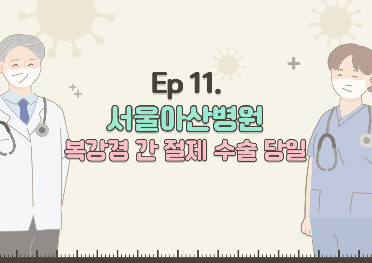 이번 편은 서울아산병원에서 복강경으로 간 절제 수술을 한 후기에 대한 이야기입니다. 수술 당일, 의료진의 판단으로 갑작스레 개복 간 절제 수술에서 복강경 간 절제 수술로 변경된 이야기와